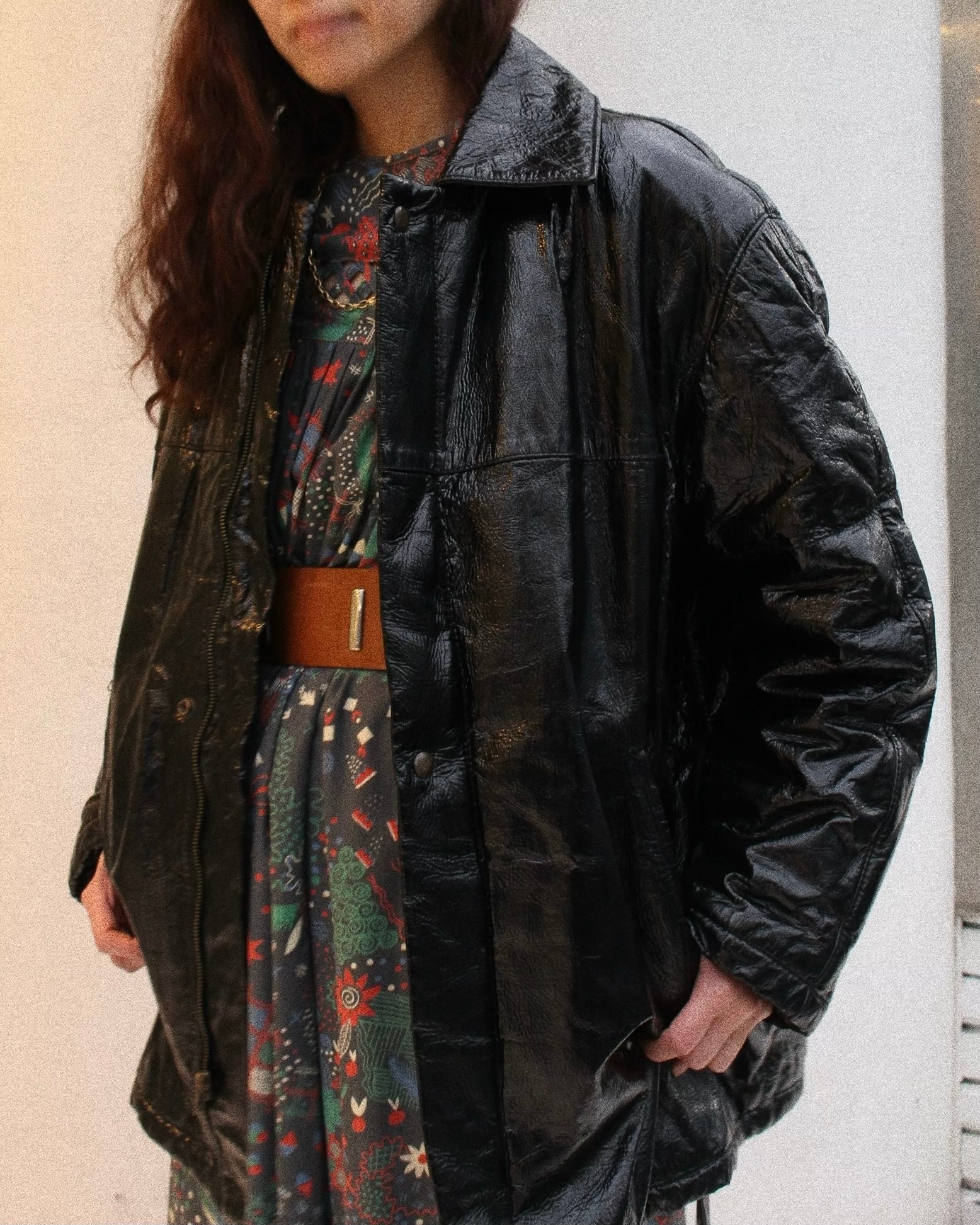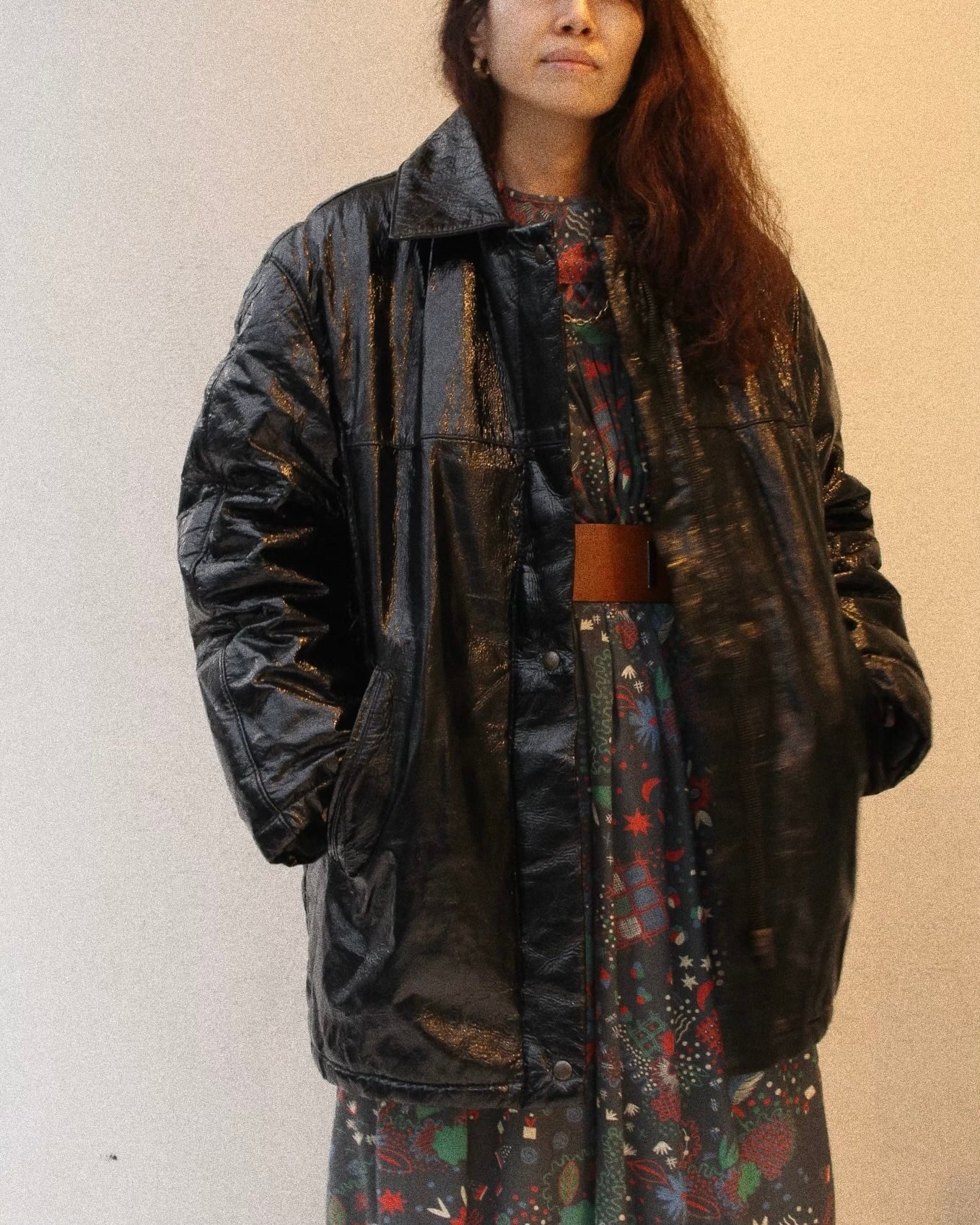 オーバーサイズのブラックのエナメルでカジュアルでも